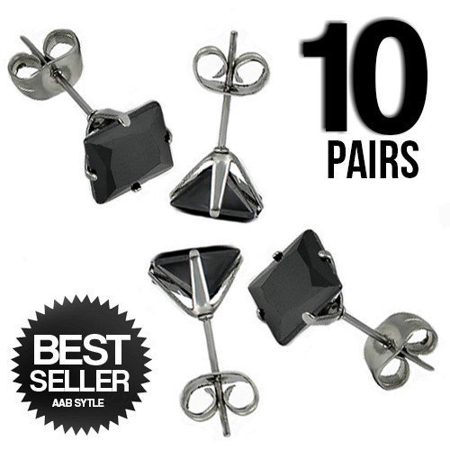 10 PAIRS PCK of Stainless Steel Black Square Ear Stud