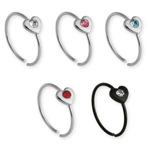 Surgical Steel Circular Nose Ring With Jeweled Heart Design. This Item Comes In Five Different Colors!!