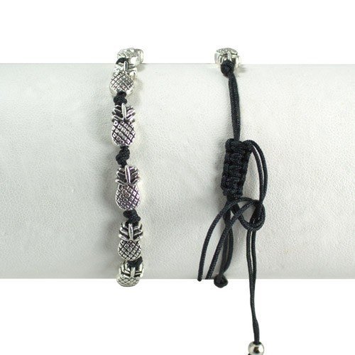 Black String Bracelet with Pineapple Charms 12 Pcs Pack