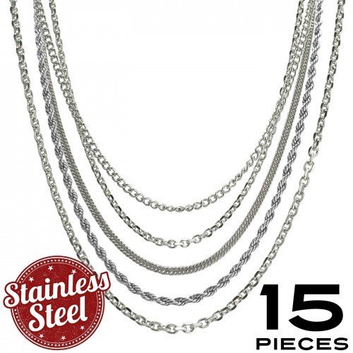 This Package contains 15 Pieces of Assorted Necklaces, 3 Pieces x 5 Types of Chains