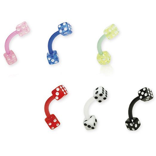 Awesome 16GA. Flexible PTFE Eyebrow Piercing With Dice.
