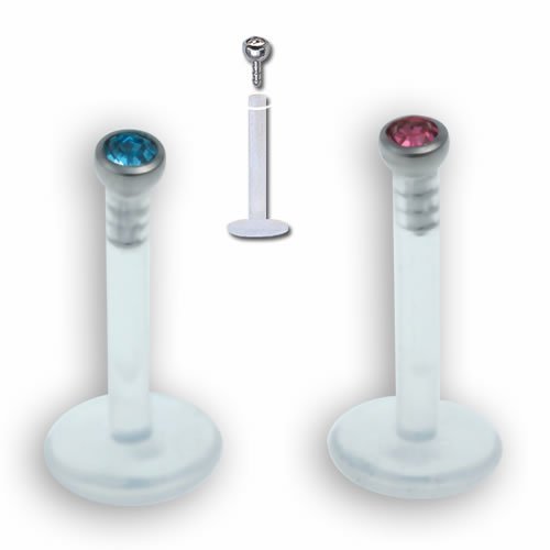 16Ga. PTFE Internally Threaded (Push Top) Labret With Micro Stone