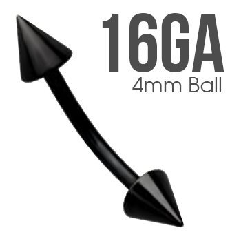 16GA – Surgical Steel Black PVD Coated Curved Barbell w/ Spikes for Eyebrow Piercings