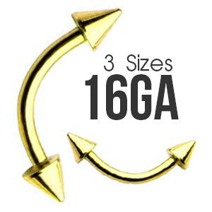 16GA – Surgical Steel Gold PVD Coated Curved Barbell w/ Spikes for Eyebrow Piercings