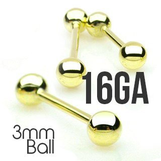 16GA – Surgical Steel Straight Barbell w/ Gold PVD Coating
