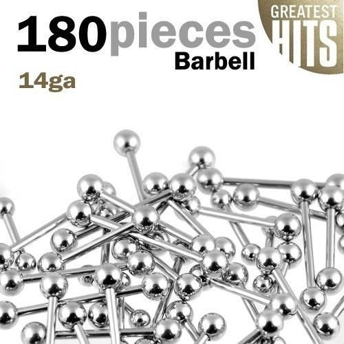This Package contains 180 Pieces of Basic Straight Tongue Barbells in Assorted Sizes