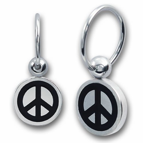 Awesome 18G. Surgical Steel Captive Ring With Peace Sign Design