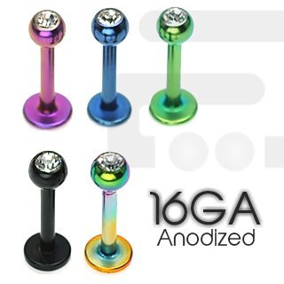 16GA. Anodized Surgical Steel Jeweled Labret!!