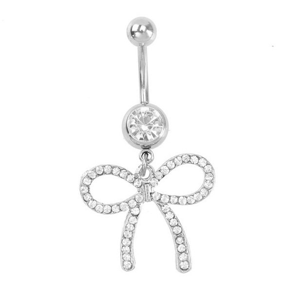 Surgical Steel Belly Ring With Hanging Jeweled Bow Design
