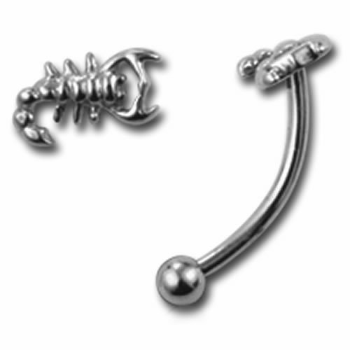 316L Surgical Steel Curved Eyebrow Ring With Scorpion.