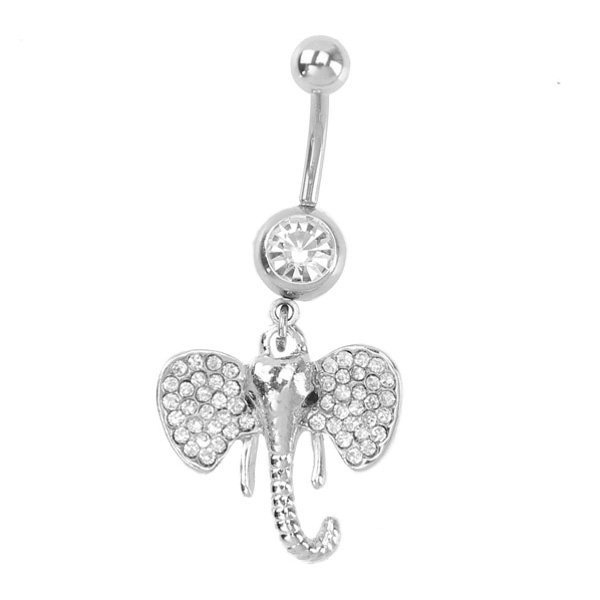 Surgical Steel Navel Ring Designed With A Jeweled Elephant Head
