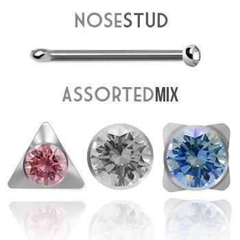 Stainless Steel Jeweled Nose Bone Package. This Package Includes an Assortment of Gem Colors in Round, Triangle, and Square Settings.