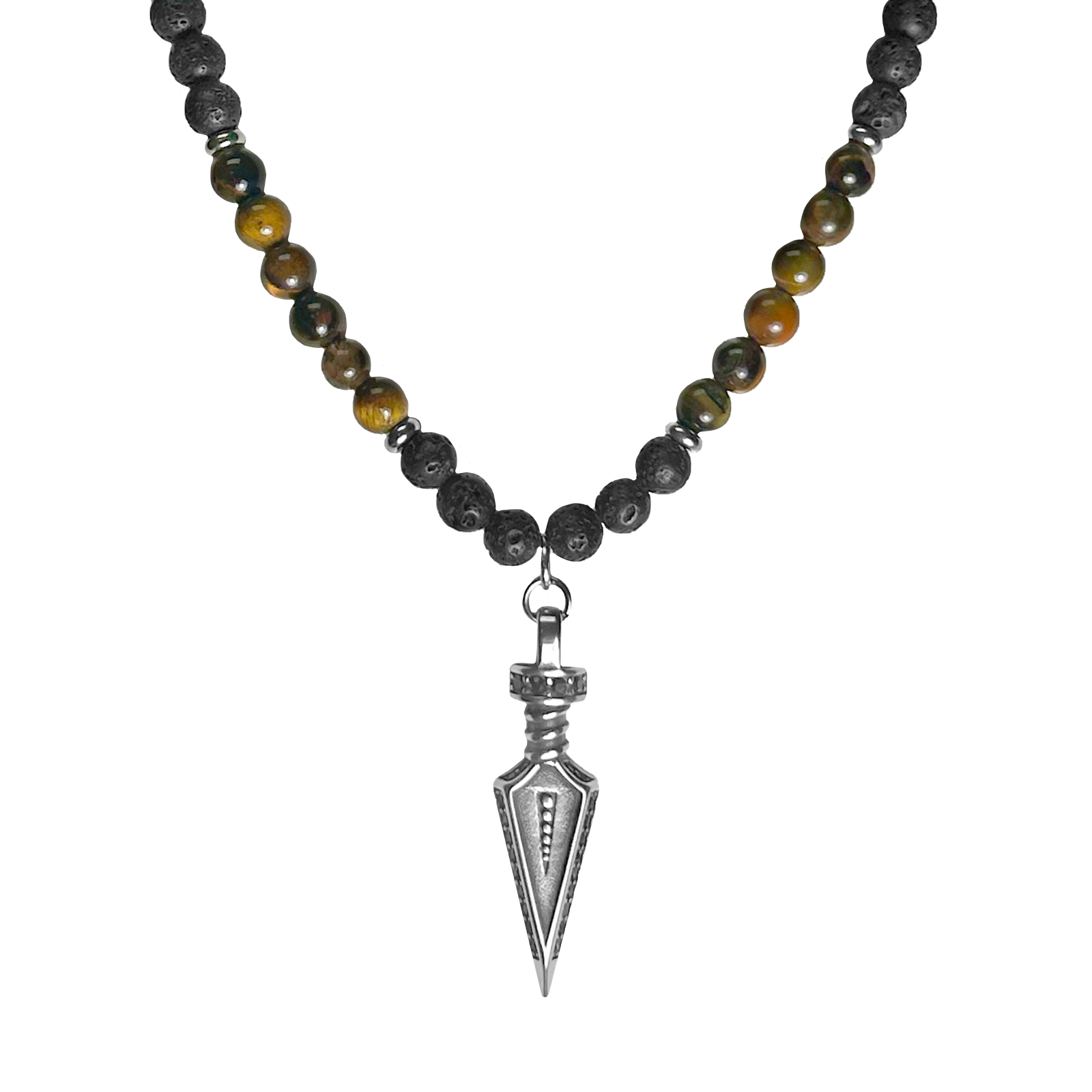 Beaded Necklace with Stainless Steel Spear Pendant