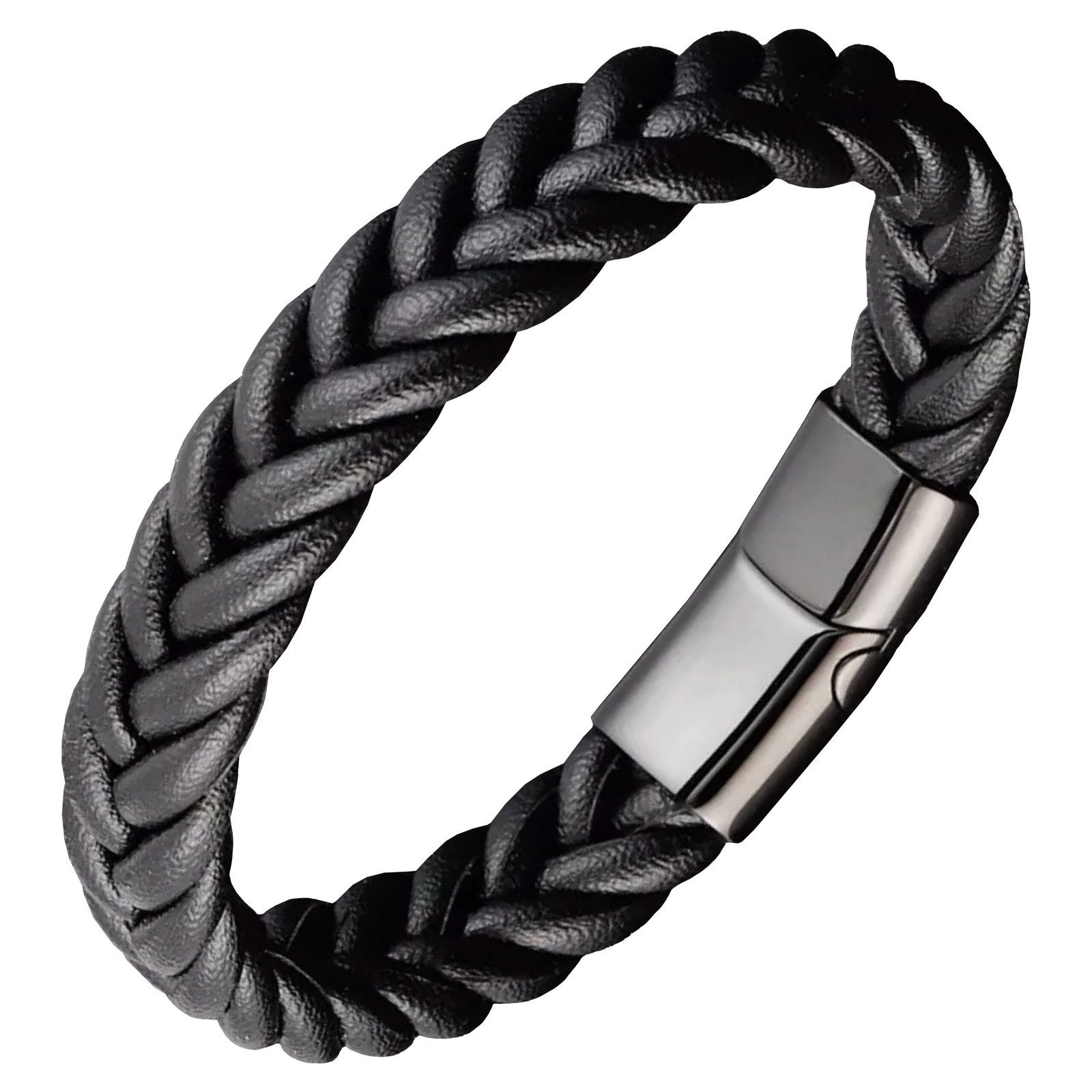 Black Braided Leather Bracelet w/ Stainless Steel Closure quantity
