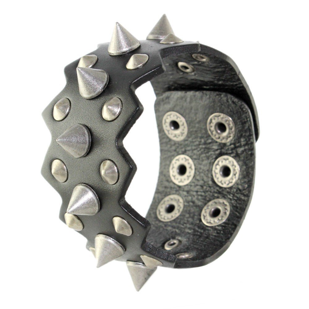 Black Leather Bracelet with Spikes
