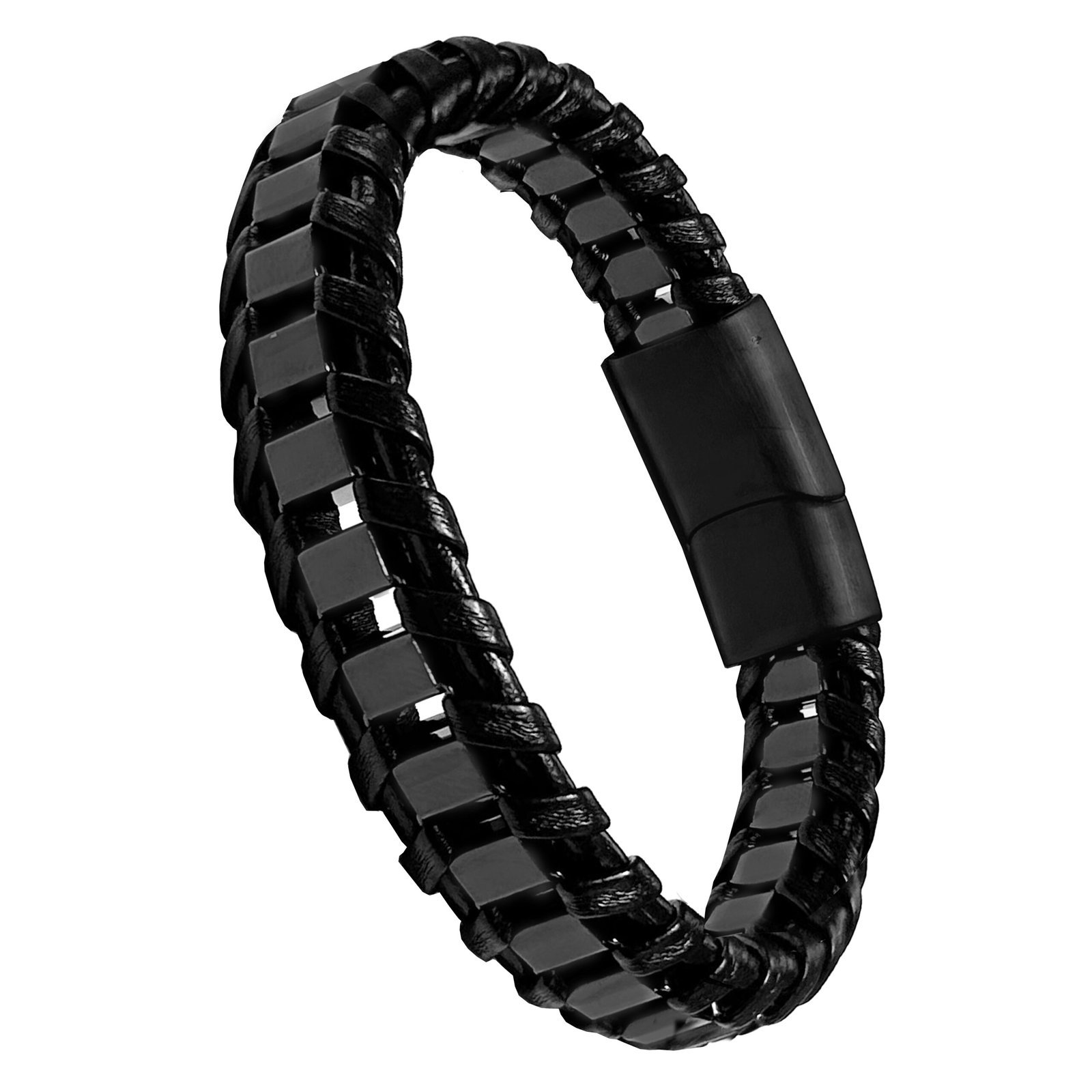 Black Leather & Stainless Steel Bracelet