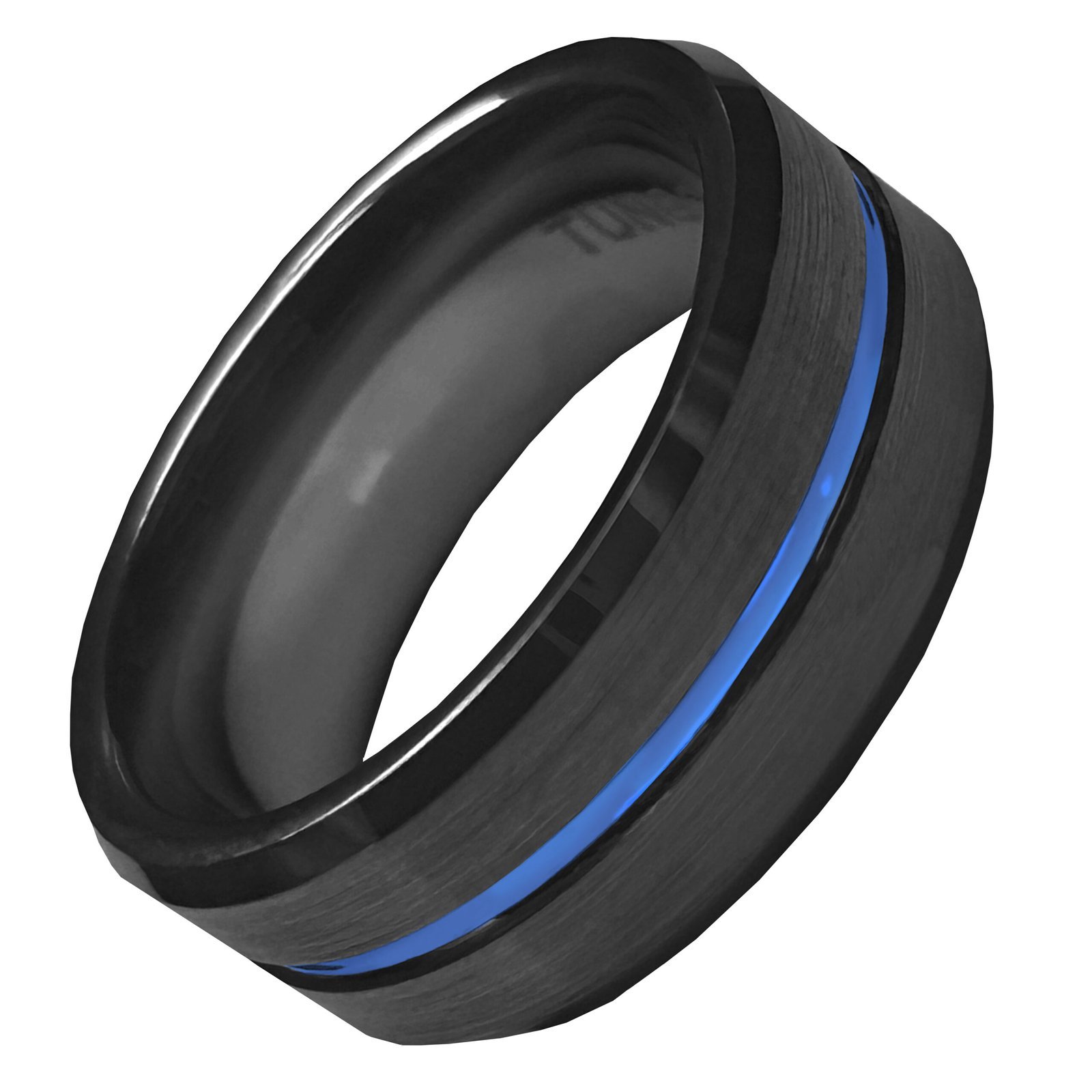 Black Tungsten Ring w/ Centered Blue Line