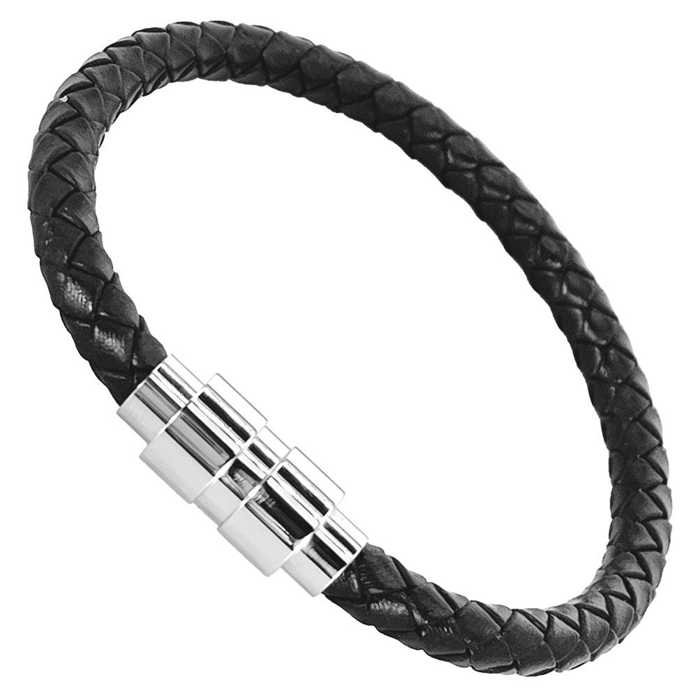 Braided Leather Bracelet with Stainless Steel Magnetic Clasp