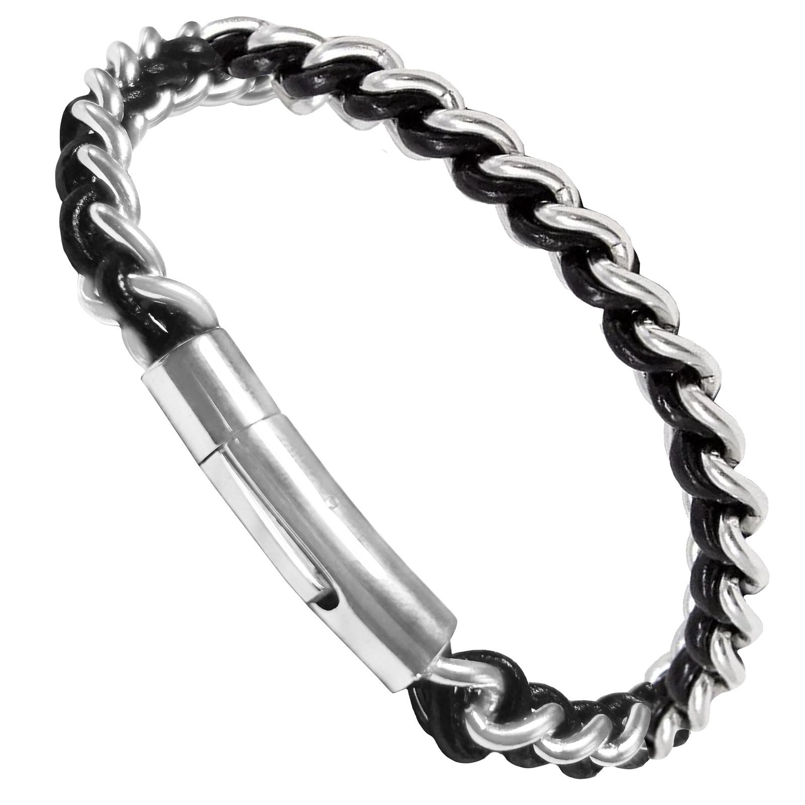 Braided Stainless Steel & Leather Bracelet