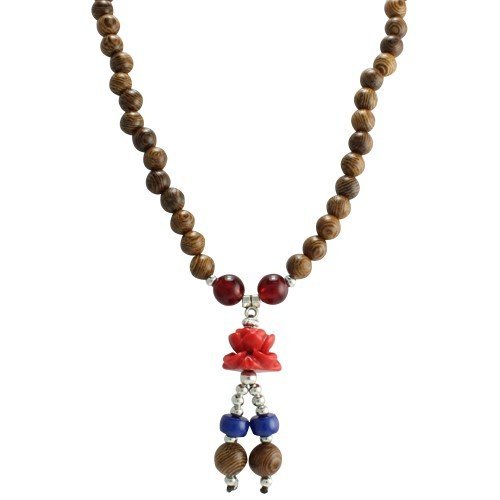 Brown Wood Bead Necklace with Rose