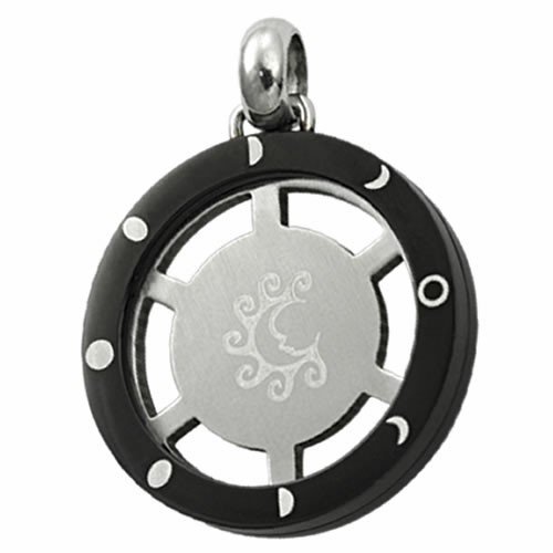 Circular Spinning Stainless Steel Pendant With Black PVD and Lunar Cycle Etched On the Outter Part