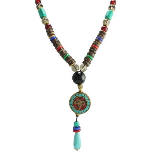 Colorful Wood Beaded Necklace with Designer Pendant