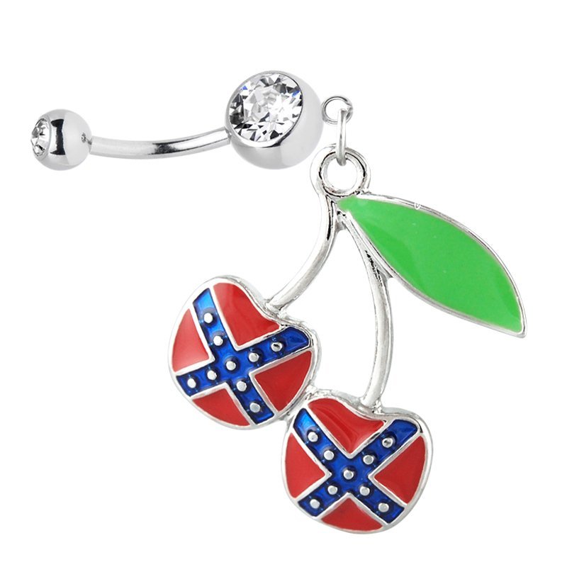 Confederate Rebel Flag Cherry Double Jeweled Belly Ring