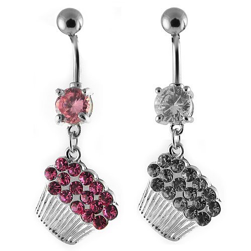 Cupcake Shape Belly Button Ring in Stainless Steel with CZ’s