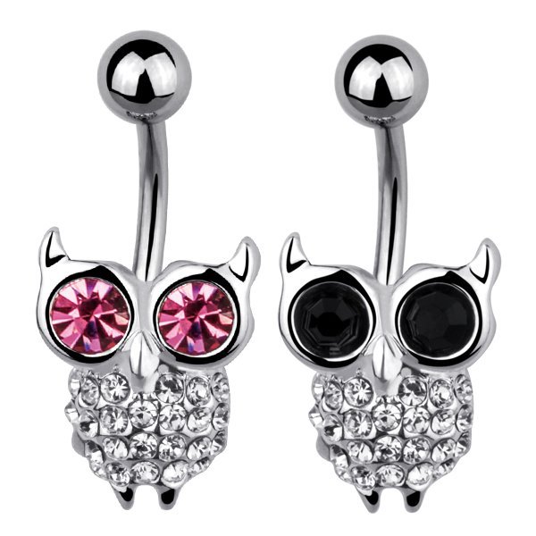 Surgical Steel CZ Owl Navel Belly Ring Jeweled Non Dangle.