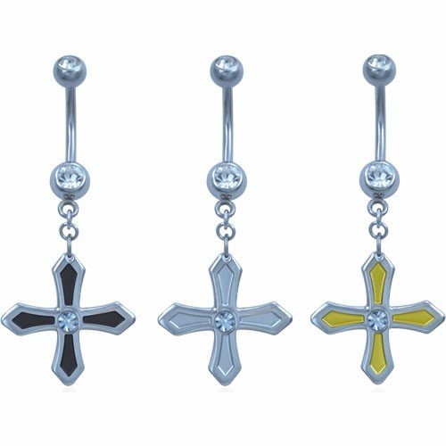 Dangling Surgical Steel Iron Cross Belly Ring With Small CZ in The Center