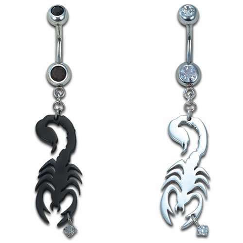 Dangling Surgical Steel Scorpion Belly Ring With Small Dangling CZ
