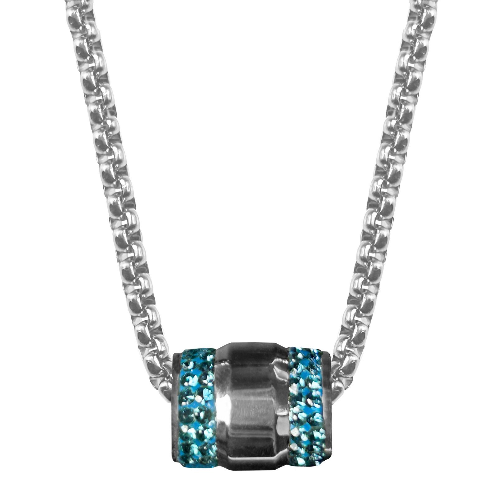 Dark Stainless Steel Barrel w/ Blue CZ Necklace