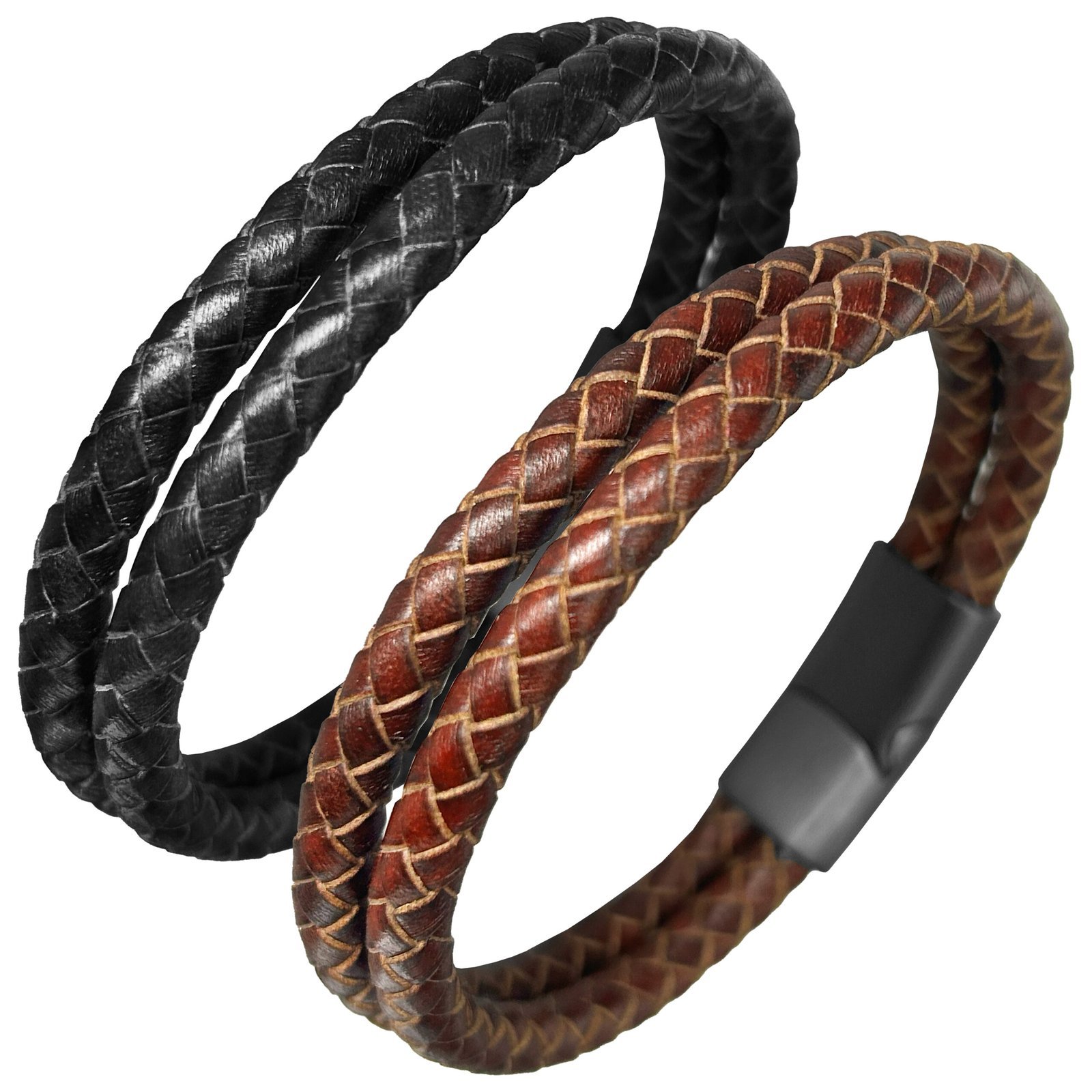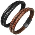 Braided Leather Bracelet w/ Stainless Steel Clasp