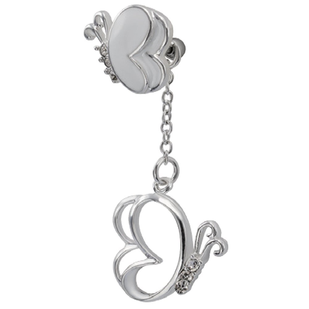 Double Heart CZ Butterfly silver Belly Dangle