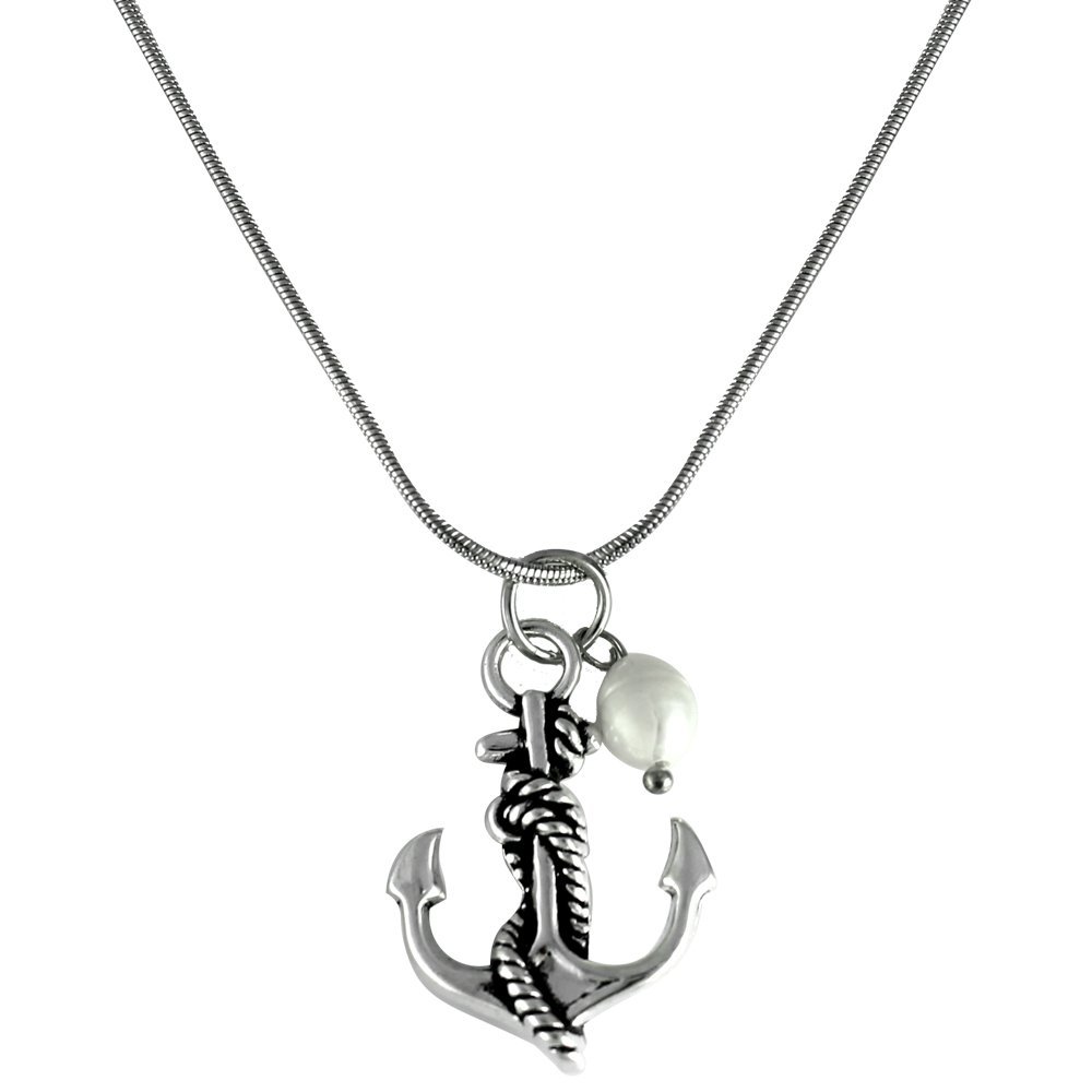 Fashion Necklace w/ Anchor & Pearl Stone Charms