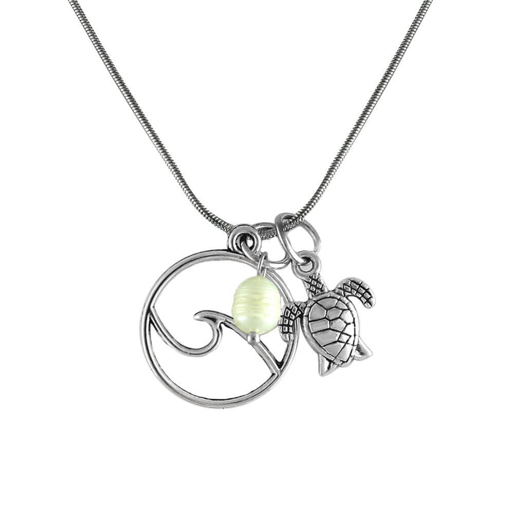 Fashion Necklace w/ Wave & Turtle Charms