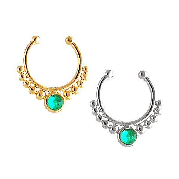 Fashion Oriental Style Pierce Free Septum Ring with Green Rhinestone quantity