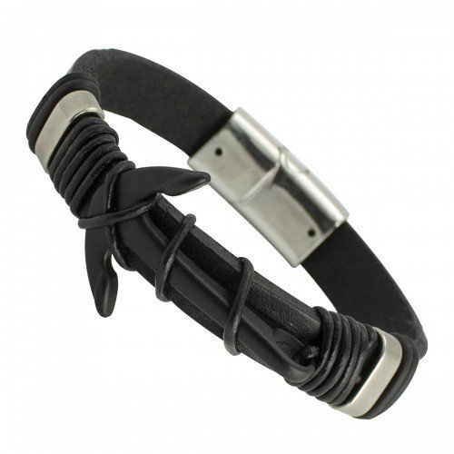 Fashionable Black bracelet with Black Anchor and Magnetic Clasp
