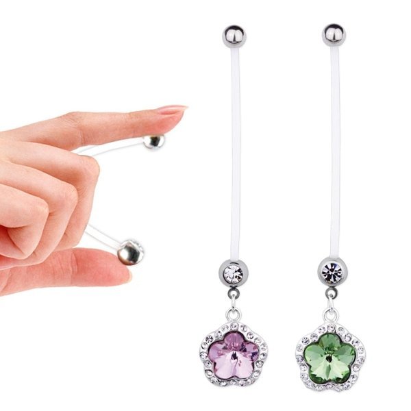 Flexible Jeweled PTFE Pregnancy Flower Dangling Belly Ring