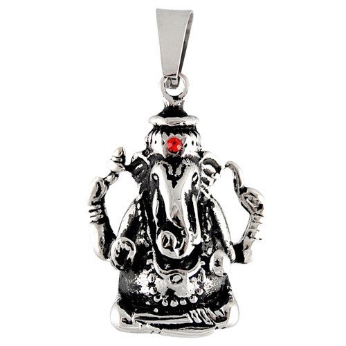 Popular Ganesh Stainless Steel Elephant God Pendant. The Bail Can Accommodate a Chain up to 8.5mm Wide. Specifications, Length (Including Bail), + 1-11/16″ in. (43mm) / Width, 15/16″ in. (23mm)