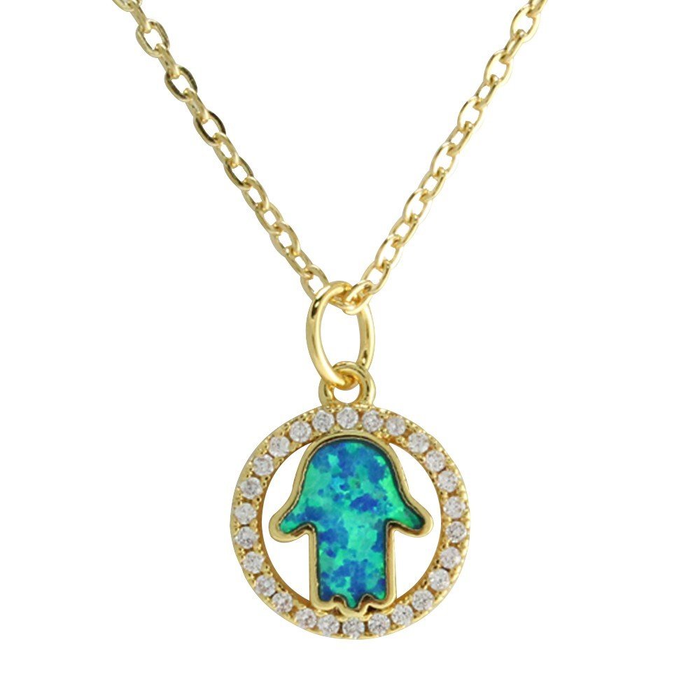 Gold CZ Hamsa Necklace with holographic