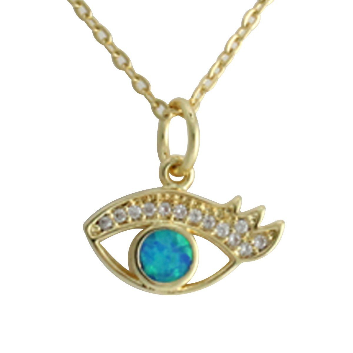 Gold Oval Link Necklace with “Evil Eye” holographic Charm