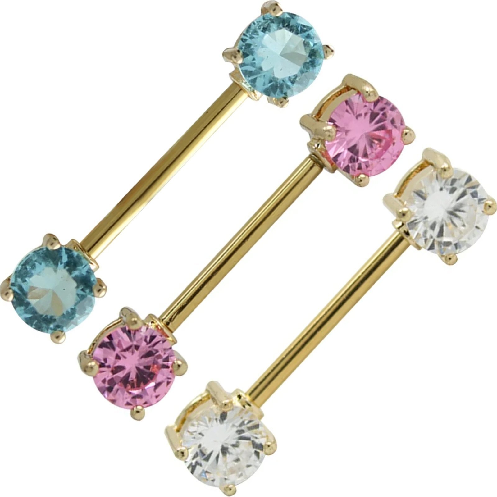 Gold PVD Prong Set Double Jeweled Nipple Barbell
