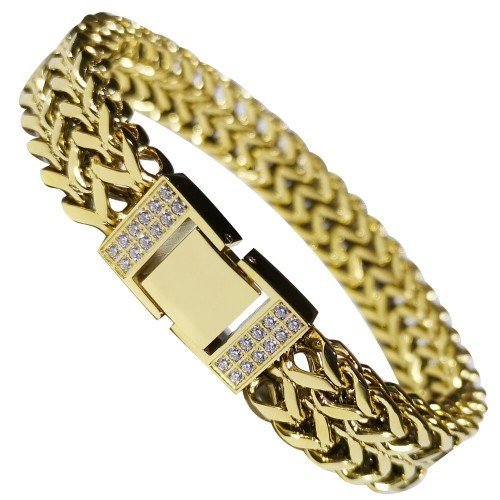 Gold PVD Stainless Steel Bracelet with Micro Pave In Lock