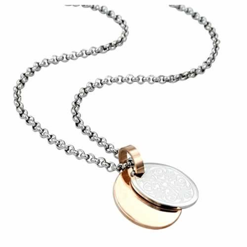 Gorgeous Stainless Steel with Gold PVD Double Pendant with Filligree Design