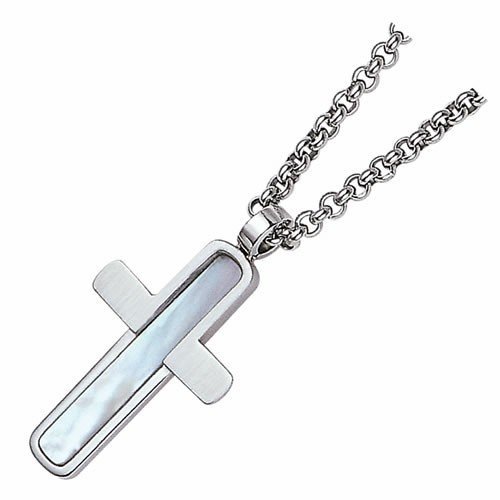 Gorgeous Stainless Steel with Mother Of Pearl Cross Pendant