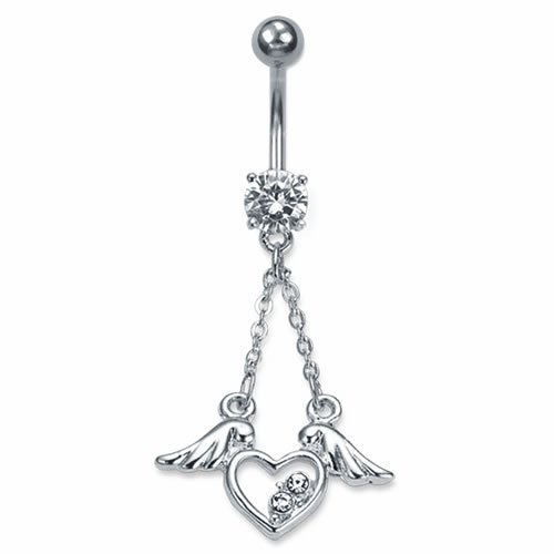 Heart Belly Ring with Flying Wings and Stones in the Heart