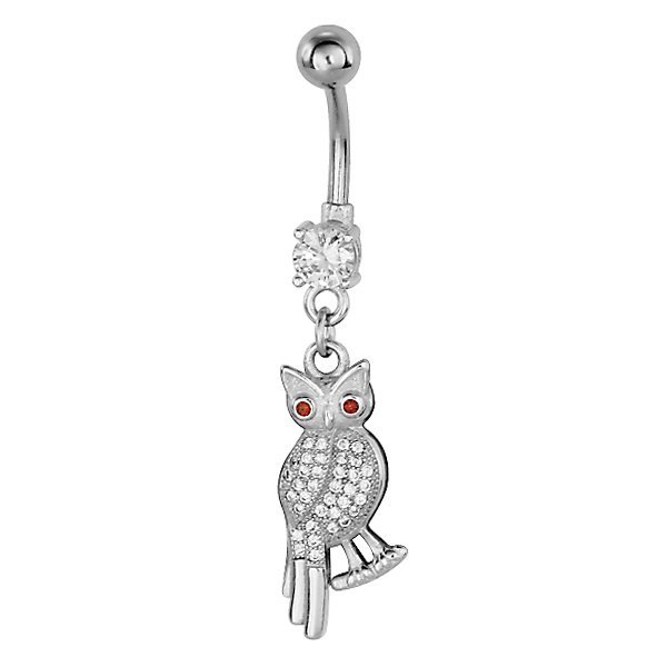 Jeweled Crystal & Hematite Owl Dangling Navel Belly Ring