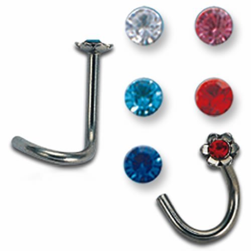 18GA Flower Shape w/ Center Stone Surgical Steel Nose Screw. Available in Different Stone Colors!!!