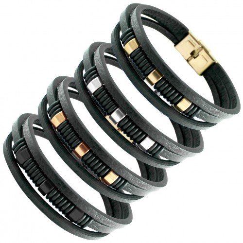 Leather W/ Stainless Steel Accent Bracelet quantity
